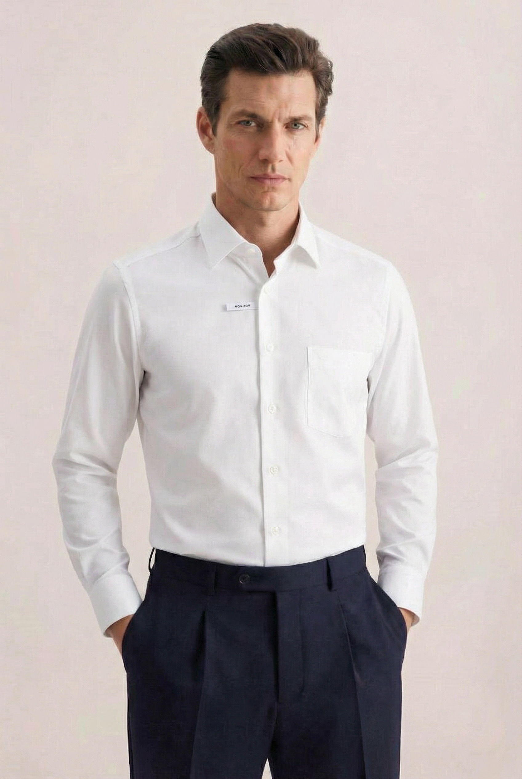 • Custom Fit, Классический воротник, Классический (на пуговице), Однотонный, Белый