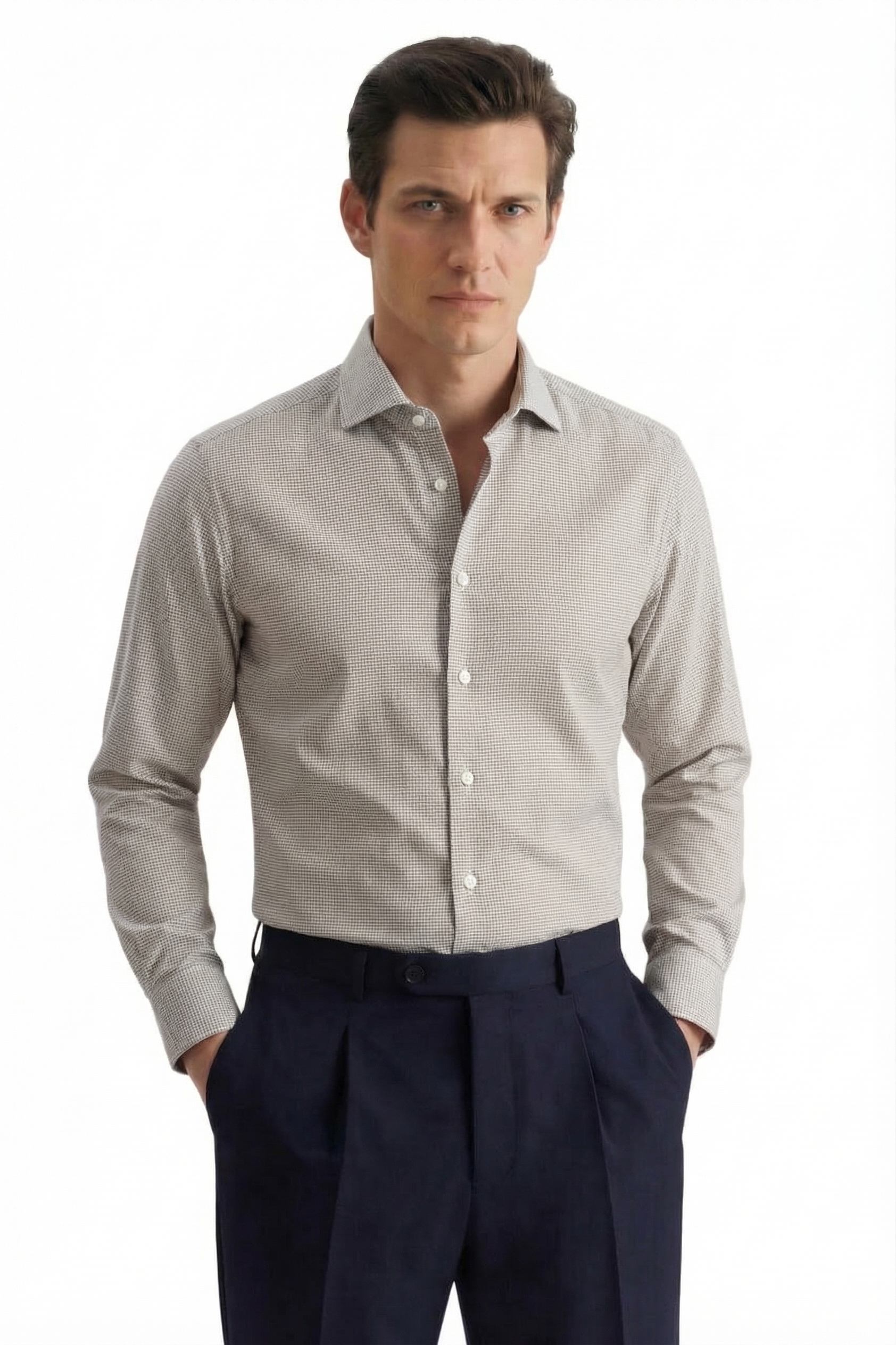 • Shaped Fit, Классический воротник, Светло-серый
