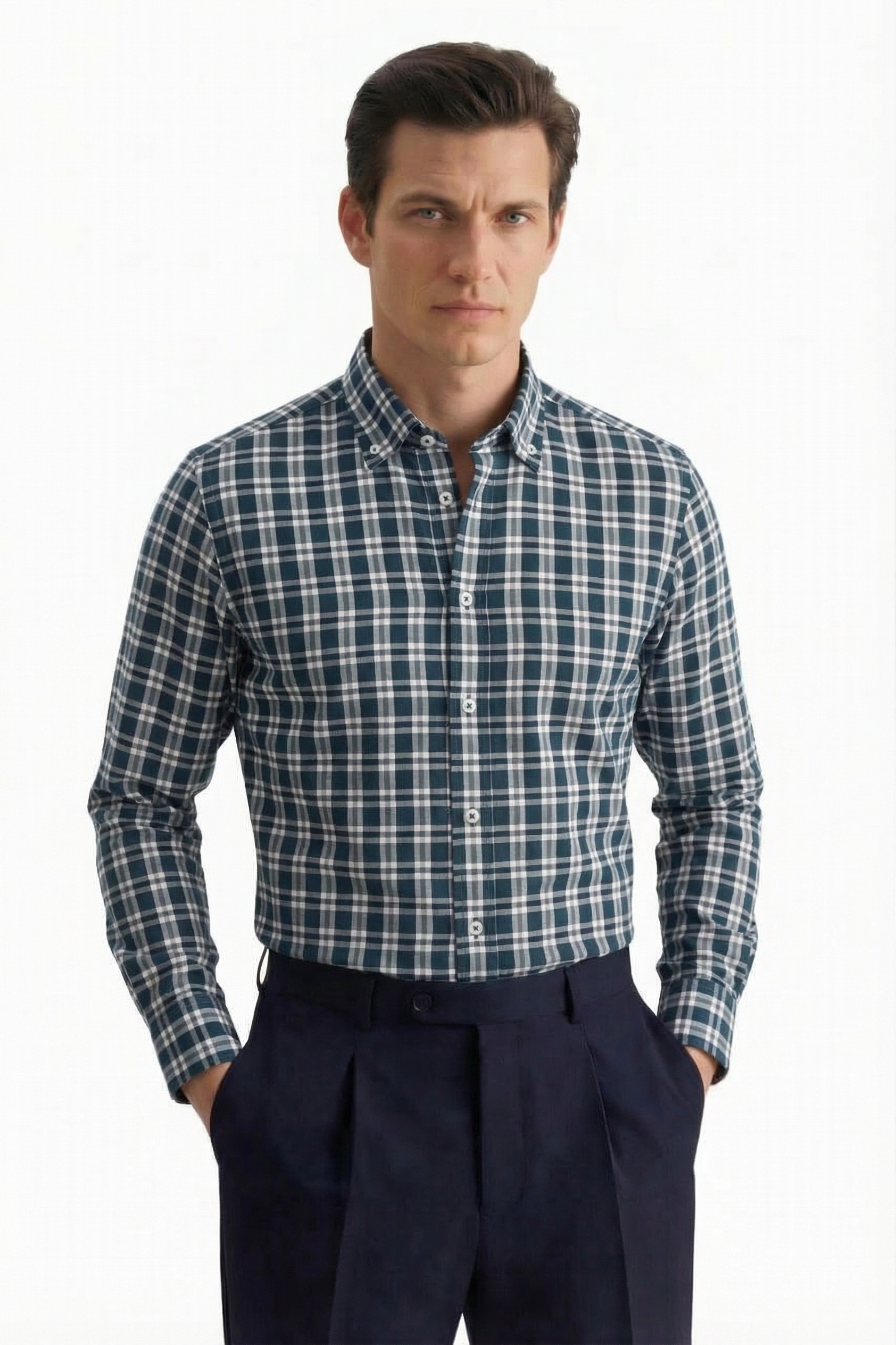 • Shaped Fit, Классический воротник, Темно-Бирюзовый