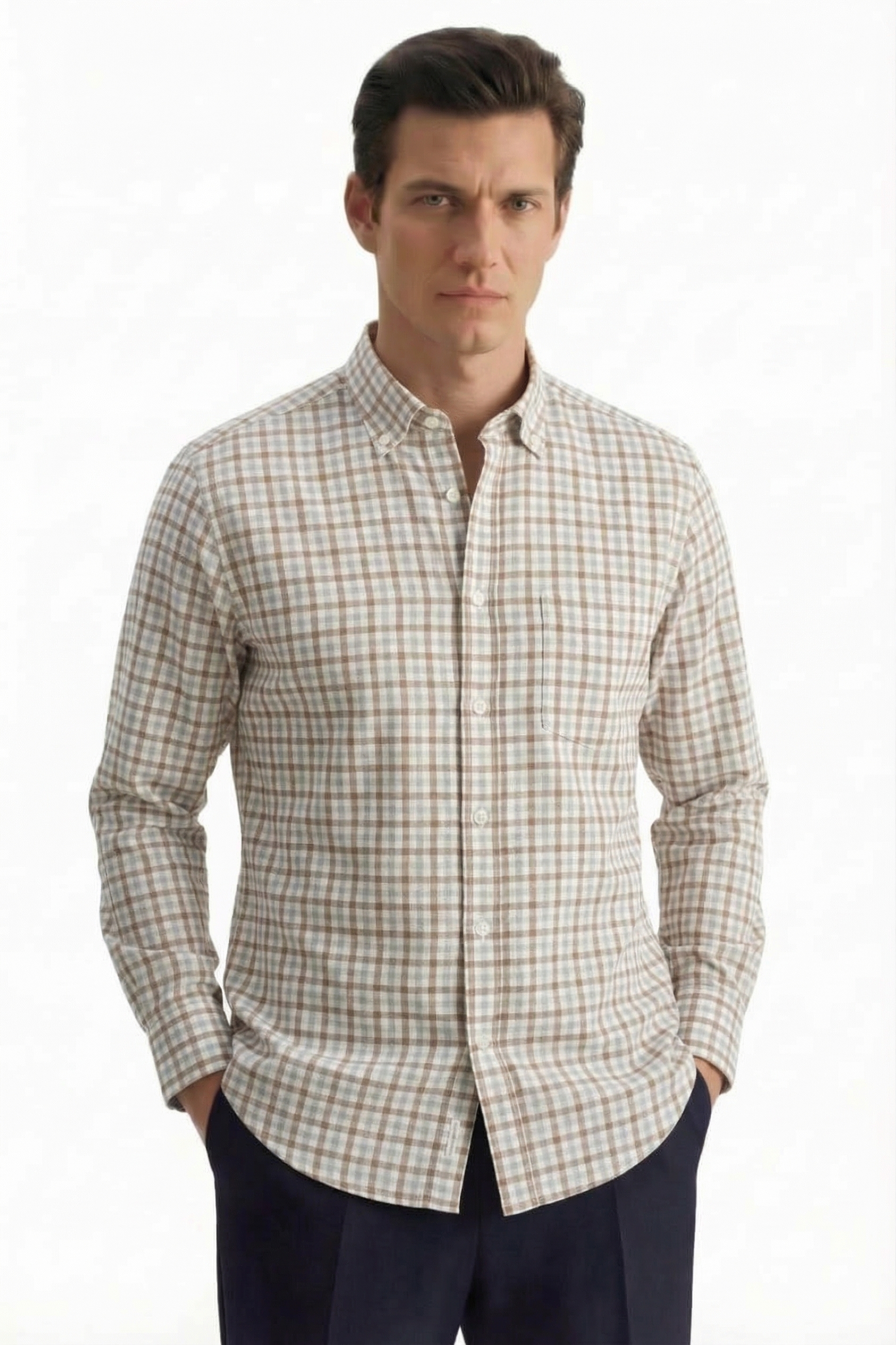 • Прямой силуэт, Button & dawn/Kent, Классический (на пуговице), Клетка