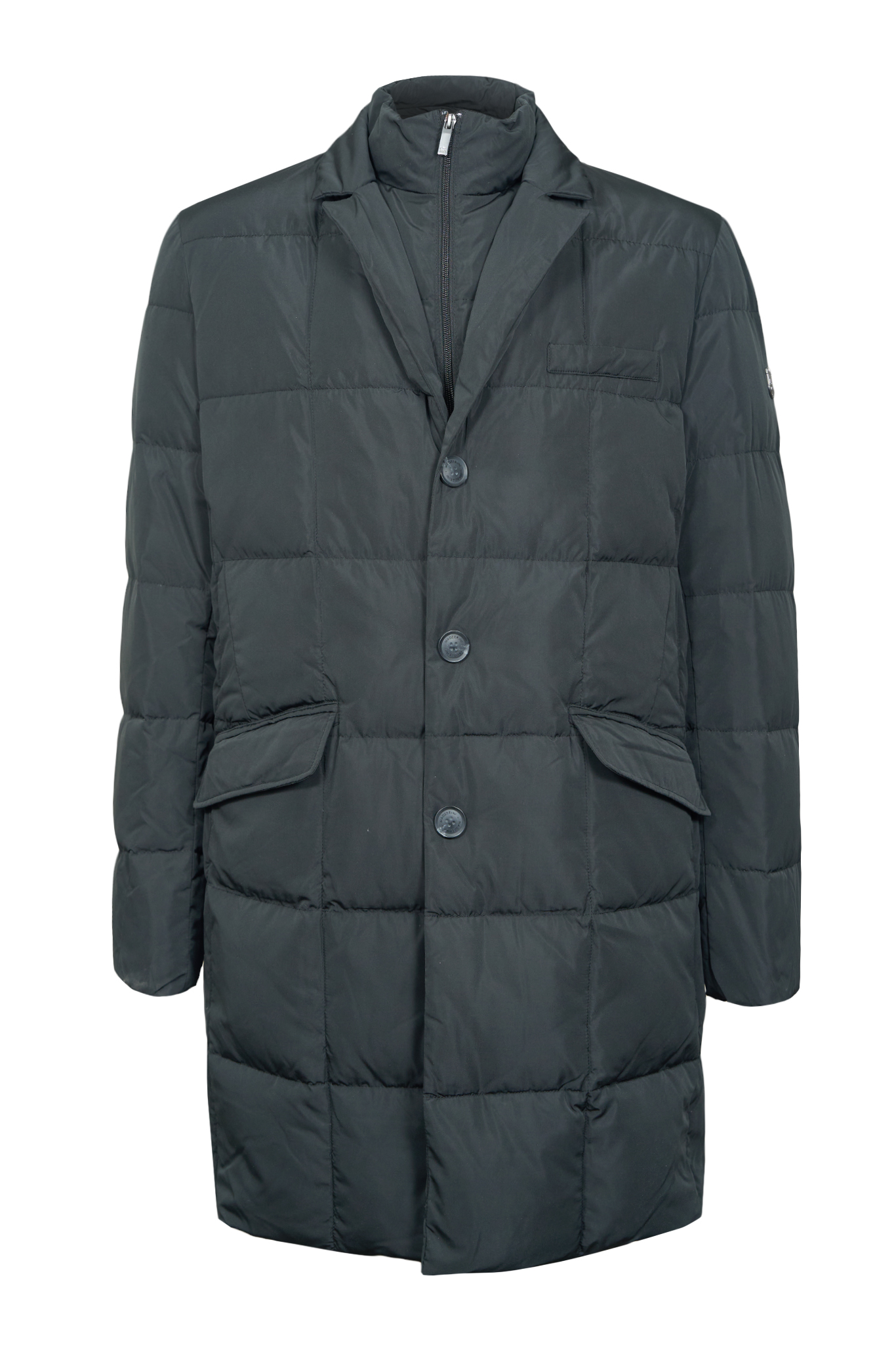 • Пуховик MADZERINI без капюшона, прямого силуэта из ткани с высокой степенью защиты от ветра и влаги. Внутри отстегивающаяся манишка с воротником-стойка. Застежка на кнопках с декоративными пуговицами. Три наружных кармана. Два внутренних кармана на молнии. На левом рукаве фирменный логотип. Внутреннее наполнение: 90/10 утиный пух-перо. Отлично подходит для повседневной носки.